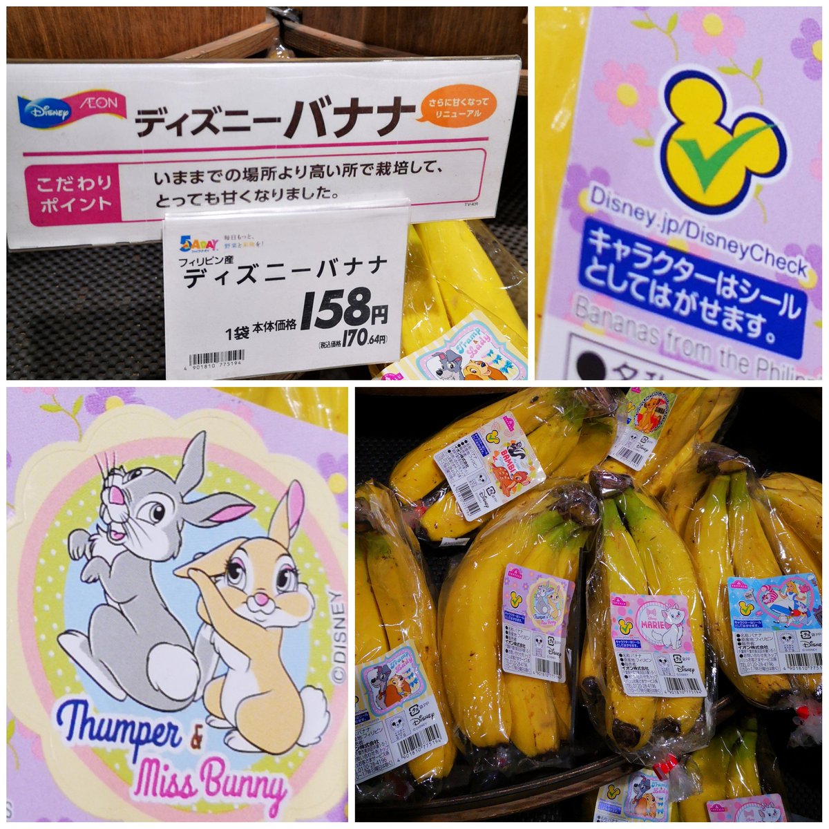 カタナ ディズニーバナナですて シールがついてるからって なんでも買ってまうと 思うなよ あ とんすけ ミスバニー めっけ 確かに甘くてうんま